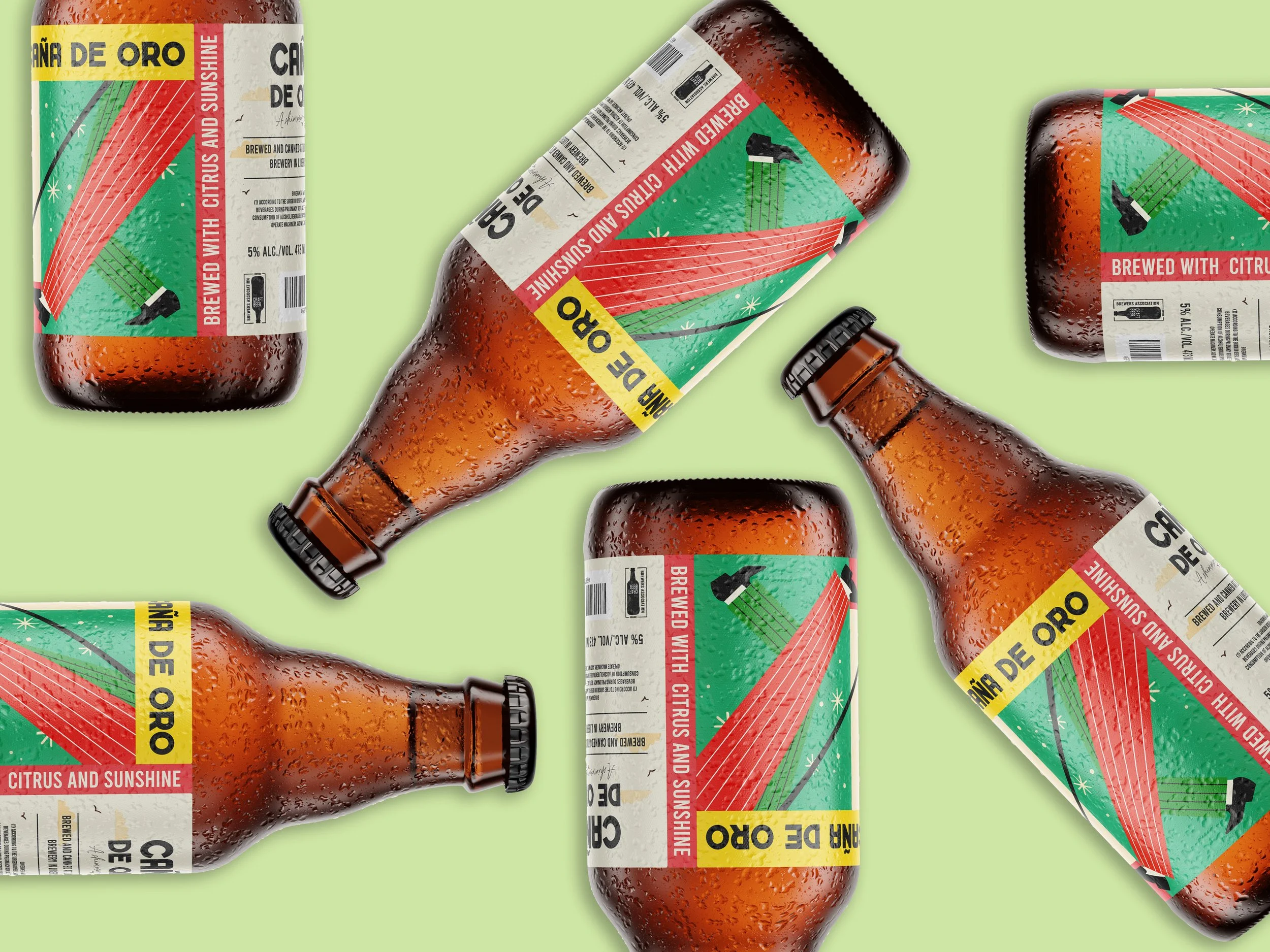 This project began as a design test set by Ubisoft Toronto — the brief that ultimately landed me a role on their branding team. The challenge: create a complete brand identity for a Cuban beer called Caña de Oro, meaning "golden cane" in English.