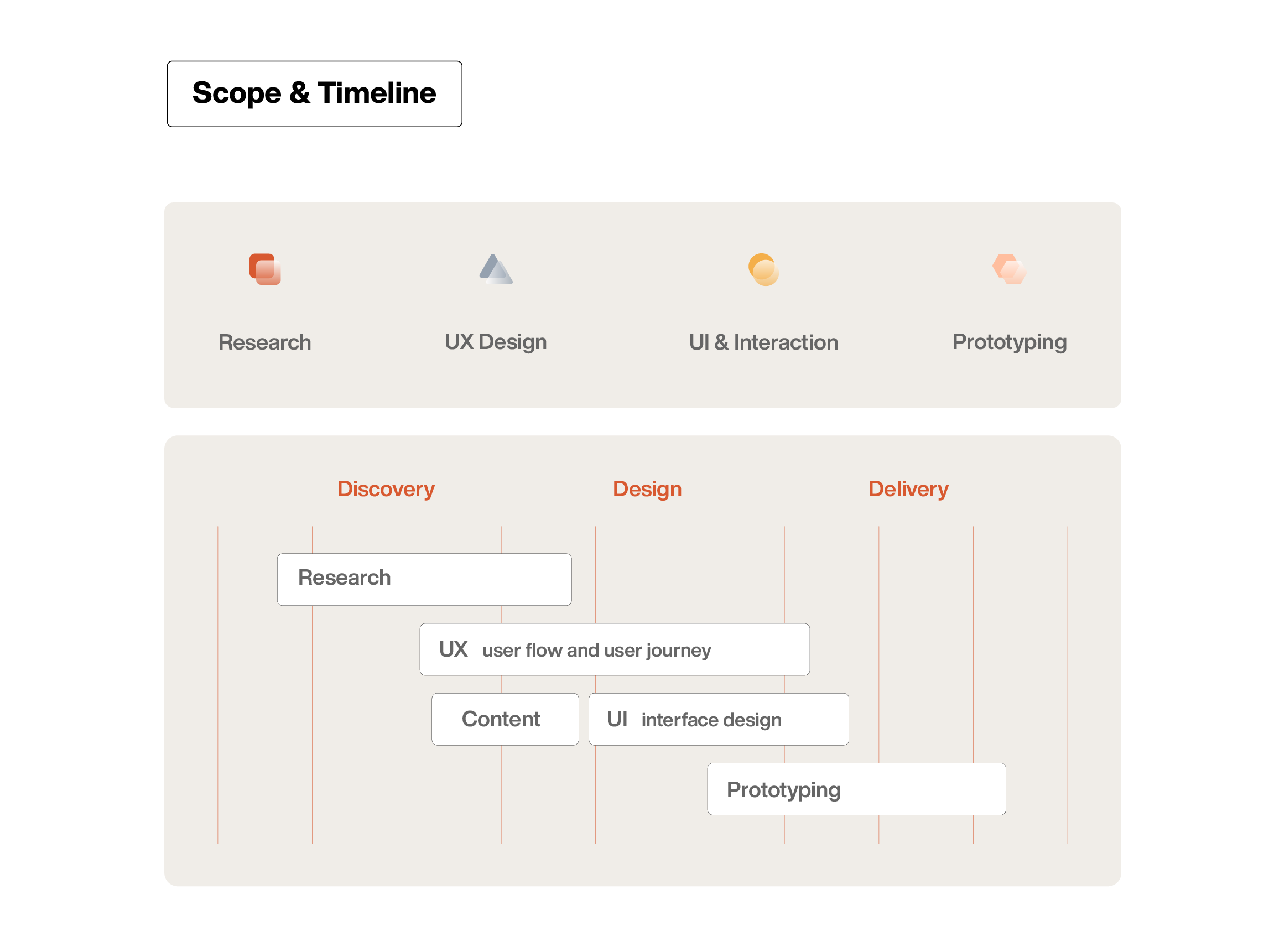 Logo · Brand identity · Visual identity · Wireframes · Hi-fidelity UI screens · Prototype · Brand Strategy