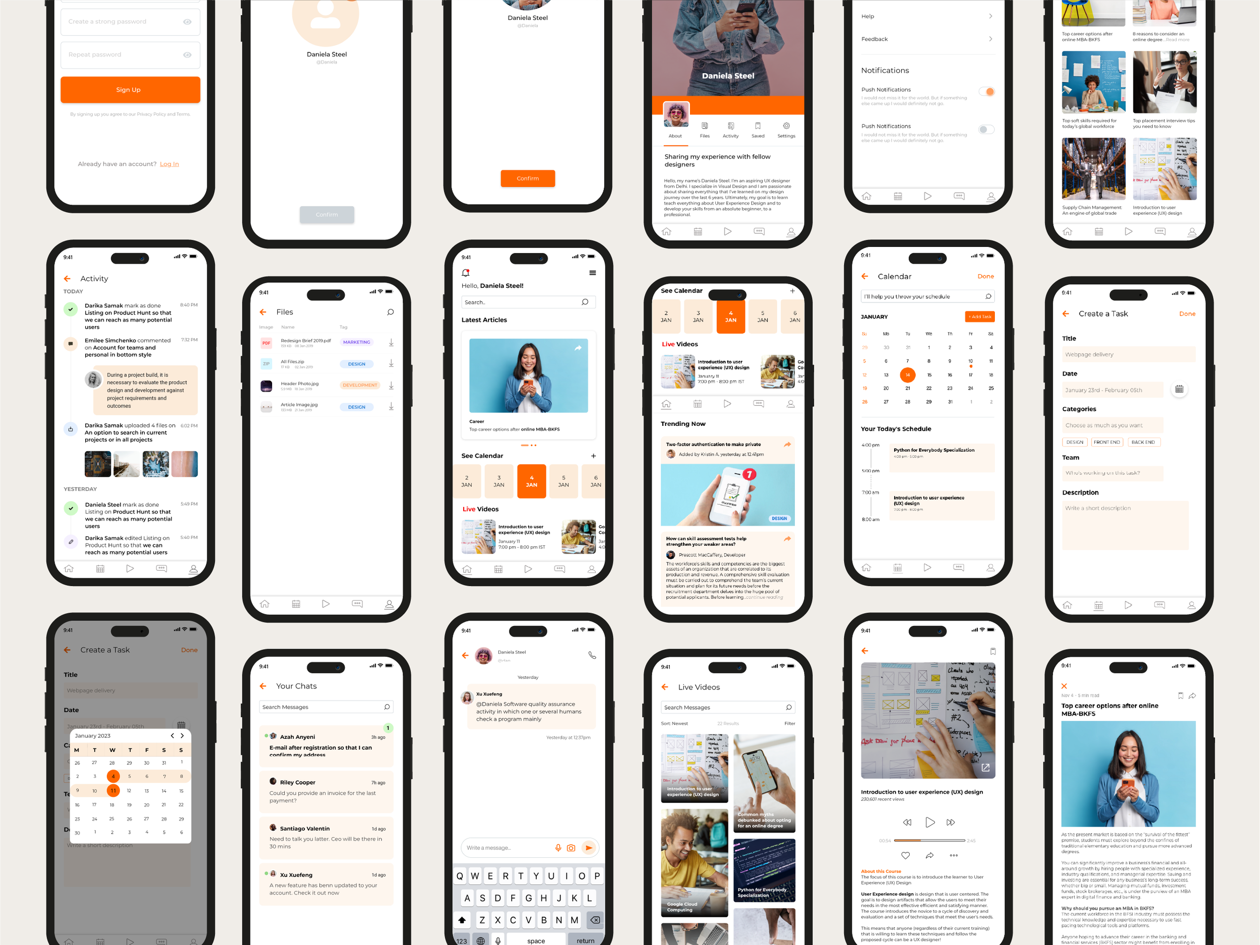 The UI design was built around real student behaviour: quick interactions, social discovery, seamless transitions between learning and community features. Wireframes were tested and iterated into high-fidelity screens and a working prototype, with the goal of making every interaction feel natural and low-friction.