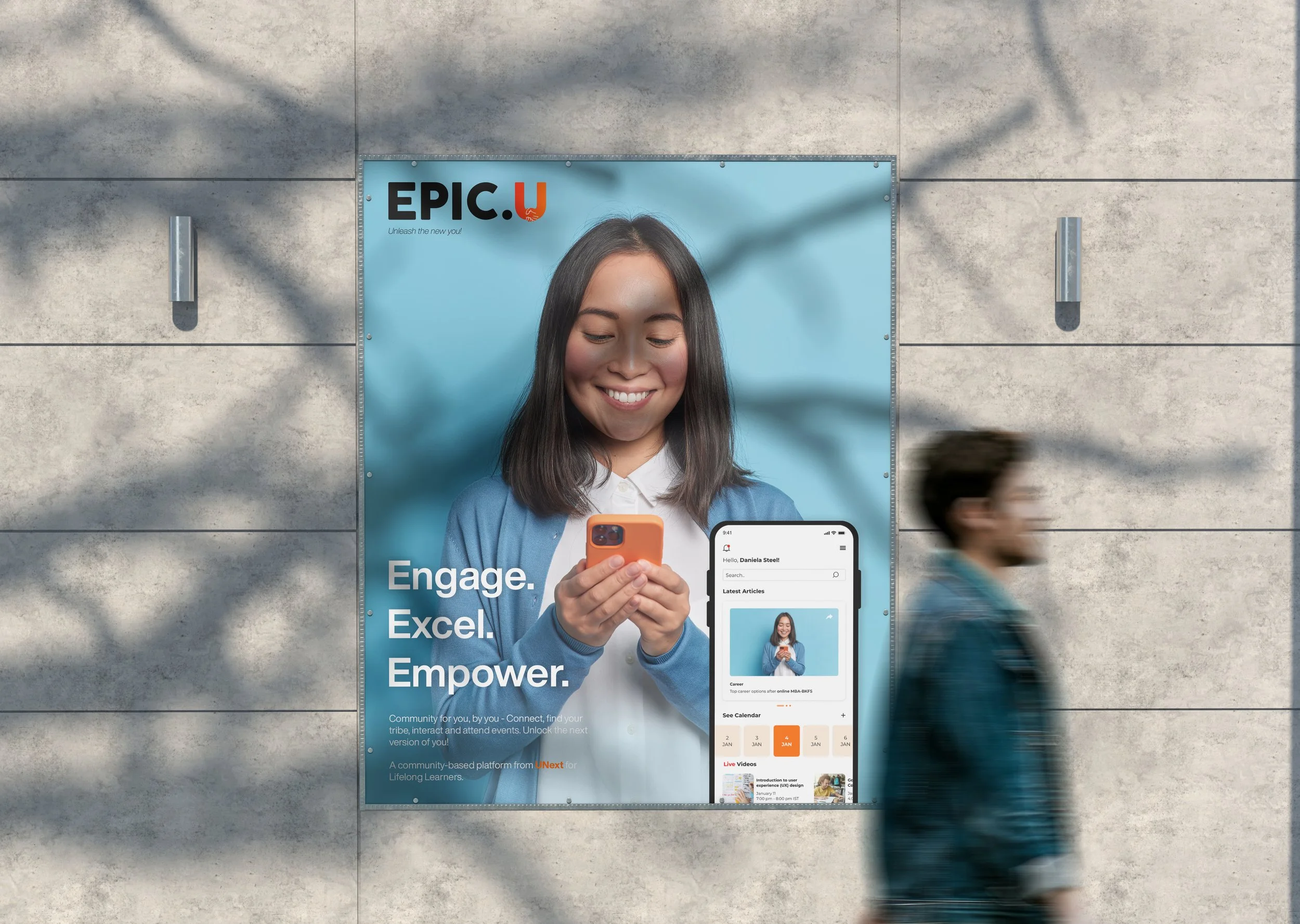 Epic.U was conceived as a potential key differentiator for UNext — a platform that creates genuine long-term affinity between students and the brand, not just a transactional learning tool. Community for you, by you. Engage – Excel – Empower