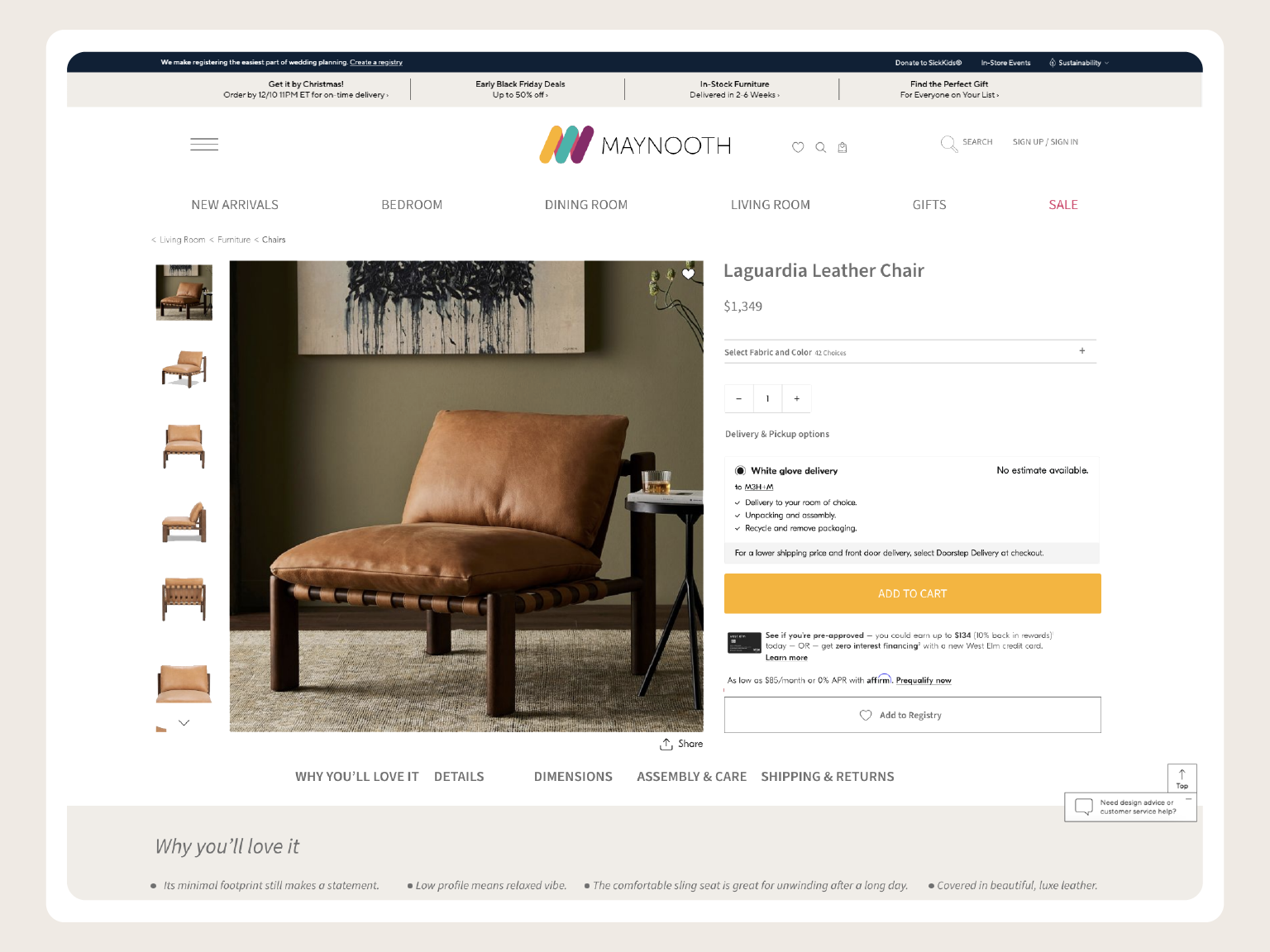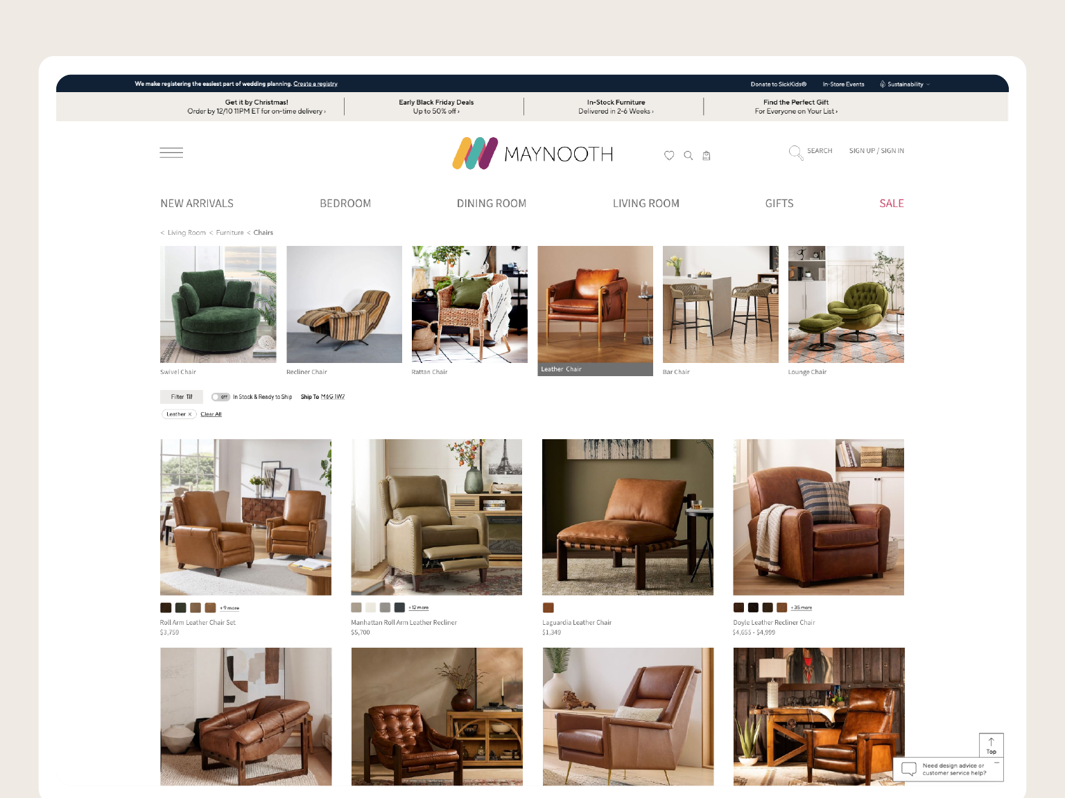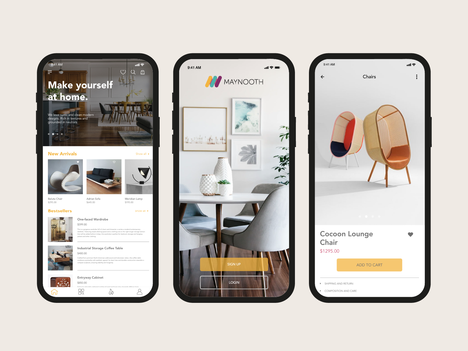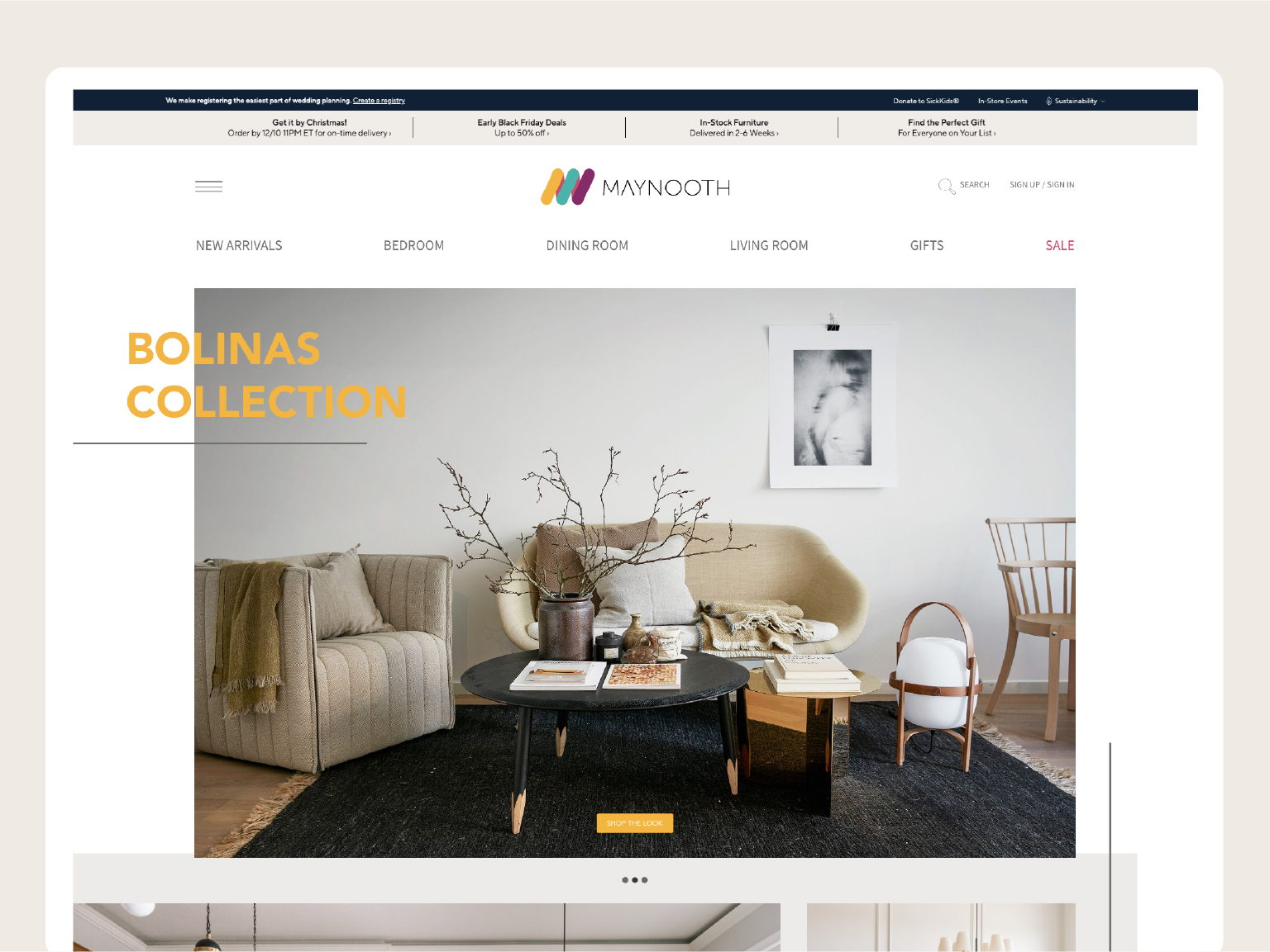 Maynooth is mid-tier furniture brand which runs a thriving retail operation of contemporary and modern home furniture. Heavily inspired by mid century modern furniture styles the idea was to create a visual identity that accentuates the brand products. The brief was to create a visual identity and digital experience that elevated the brand — making it feel as considered and refined as the furniture it sells.