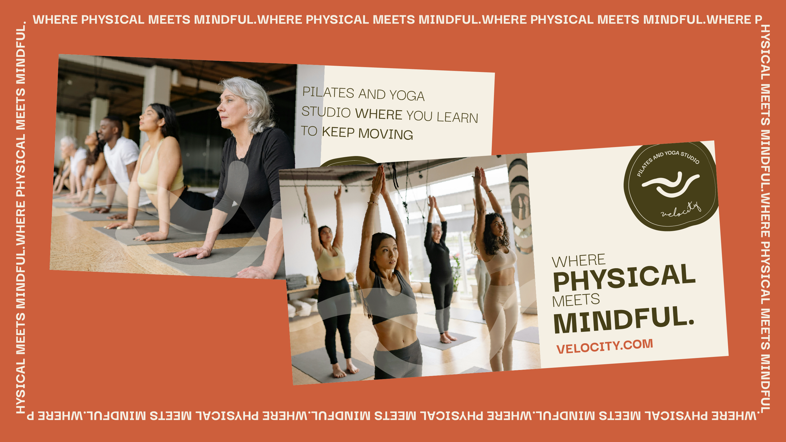 Velocity is a Pilates and Yoga studio. The goal was to create a brand identity that reflects warm studio space where people can connect with their bodies and mind. I developed a contemporary brand identity, drawing inspiration from ancient symbols of earth, water and fire. Every touchpoint is derived from warm earthy tones to minimalist typography, creating a serene brand space.